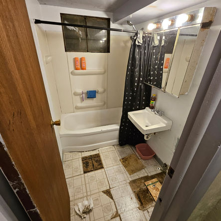This bathroom required a full restoration after severely corroded plumbing caused leaks and water damage, leading to mold behind the walls. All affected materials were safely removed and the mold was properly remediated. The space was then rebuilt with brand-new drywall, a new tub/shower unit, updated plumbing, a new pedestal sink/vanity, and fresh tile flooring—restoring the bathroom to a clean, functional, and updated condition.